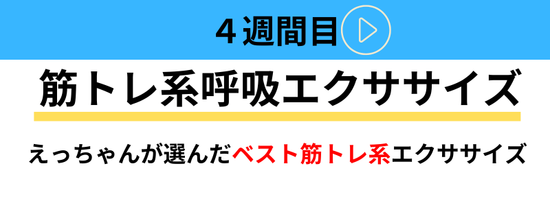 4週目には、このプログラムの集大成として、私が個人的に呼吸エクササイズの効果を高める筋トレ系呼吸エクササイズを行なっていきます。これまで3週目までに行った呼吸エクササイズの効果を最大限に高める種目となっています。