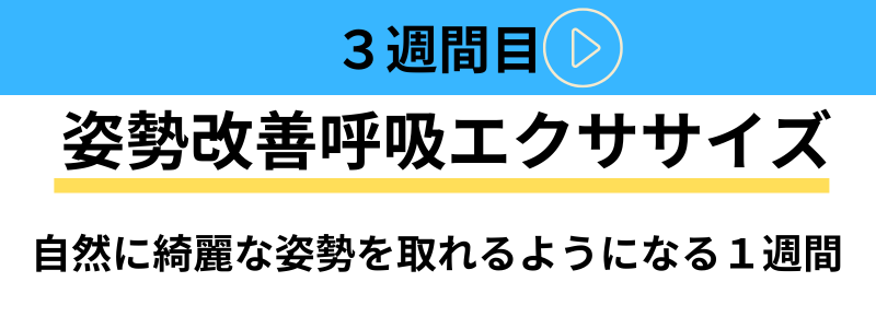3週目には、自然に綺麗な姿勢を取れるようになるための呼吸エクササイズを行っていきます。意識せずに綺麗な姿勢をとるための効果が高い呼吸エクササイズを抜粋しました。