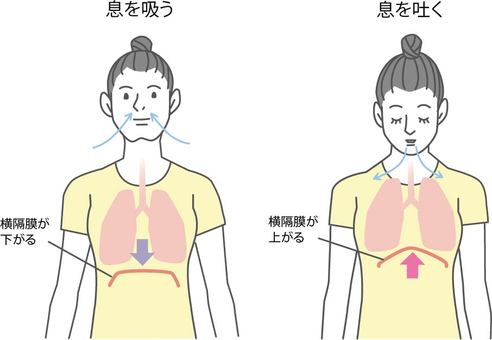 横隔膜が上下することで、息を吸ったり吐いたりできるのが本当の呼吸なんです。