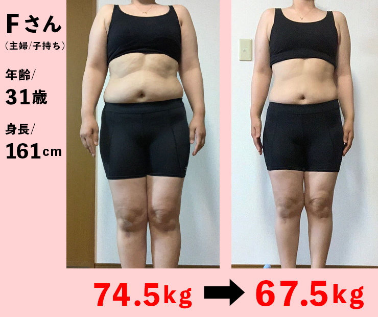 なんとFさんはたった2ヶ月で、74.5kg➡︎67.5kgにまで体重が落ちたのです!