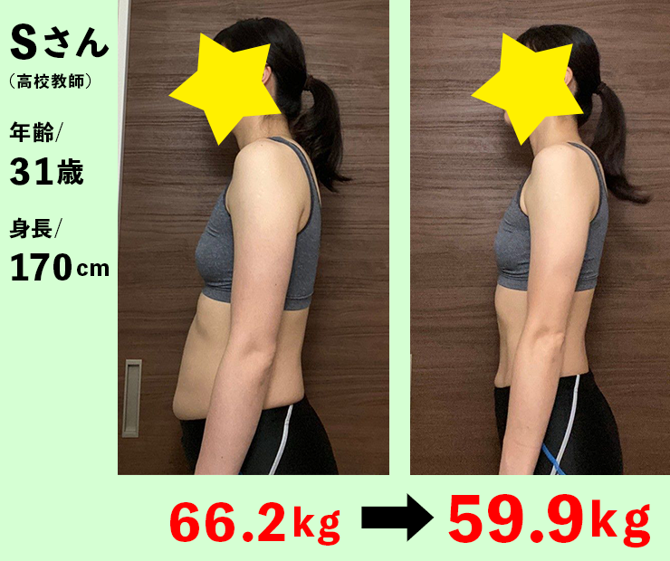 Sさんは、2ヶ月でー6kg達成。