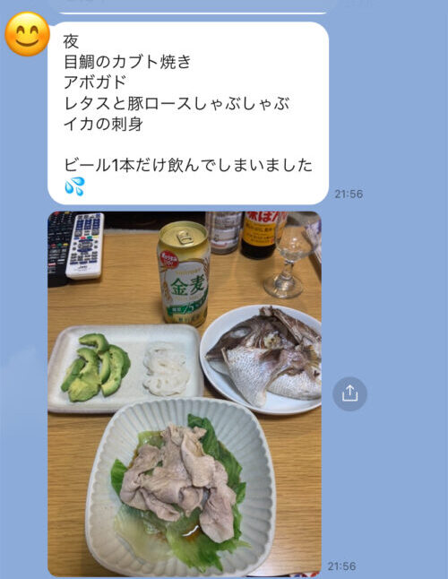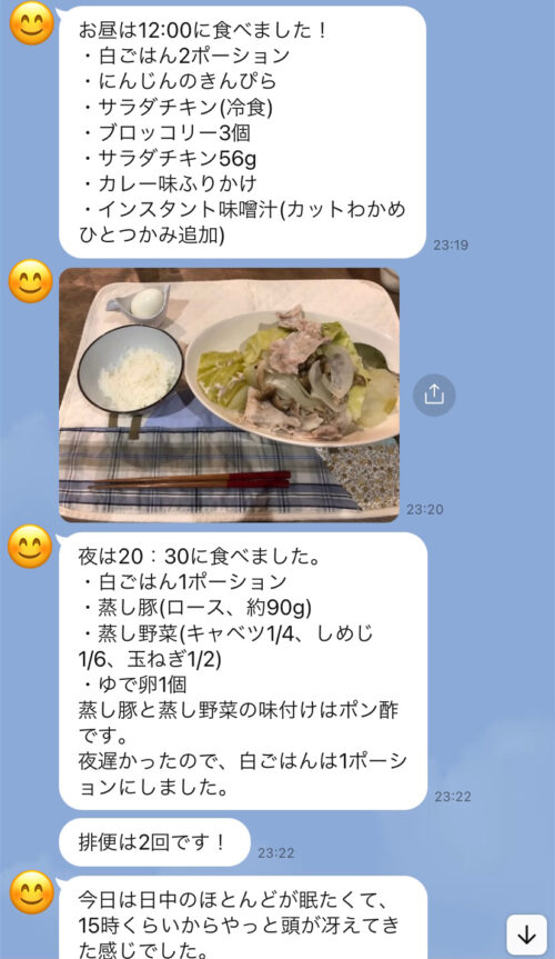 (夜ご飯の後に夜ご飯の報告及び、間食があれば間食の報告も)