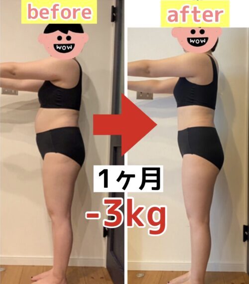 60kg➡︎57kg(1か月でー3kg減)