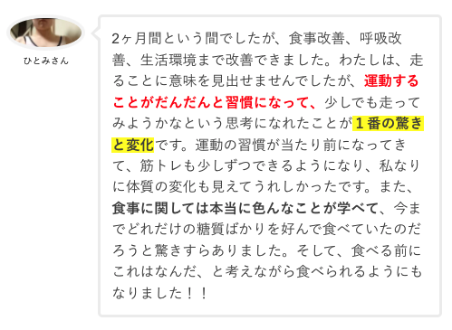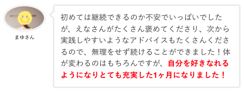 「思わずサポートを1ヶ月延長しちゃいました!自分の変化が凄くて本当に嬉しい(涙)」