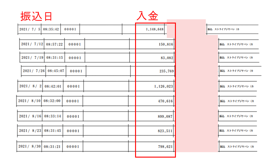 ※実際に私の口座には以下のようにお金が振り込まれています。