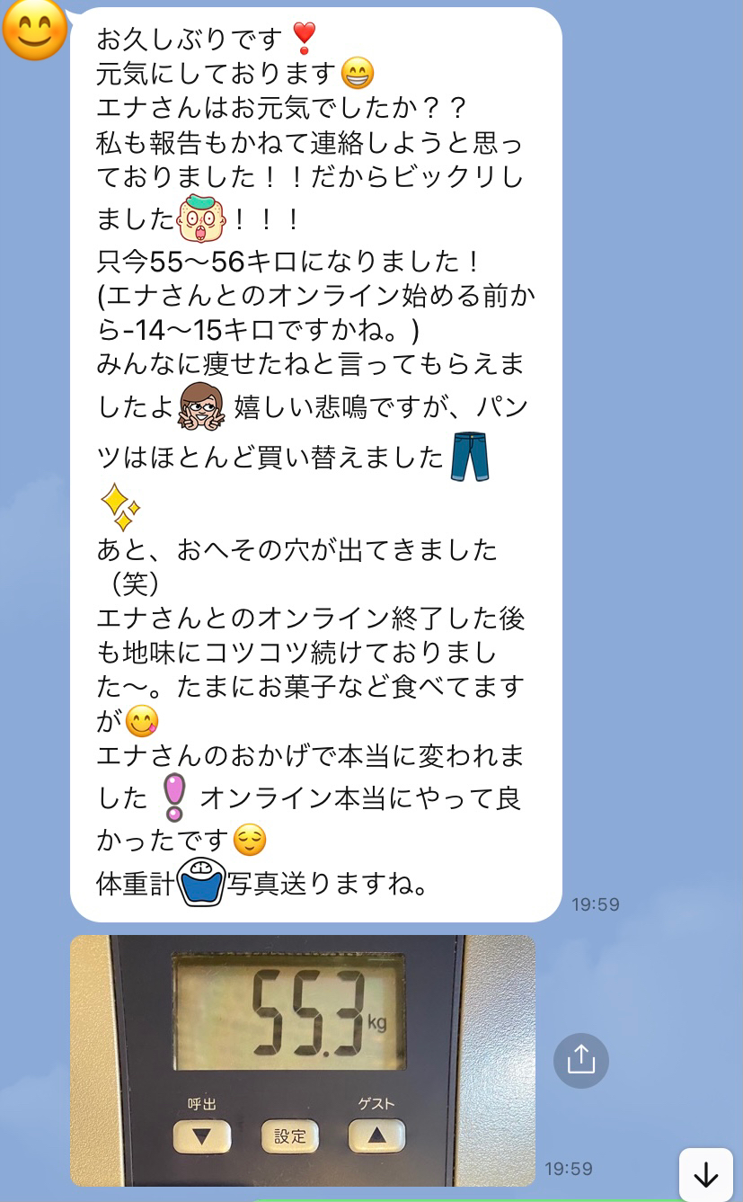 なんとサポート後には、55kg代まで落ちて、−15kg達成されたとのことです!